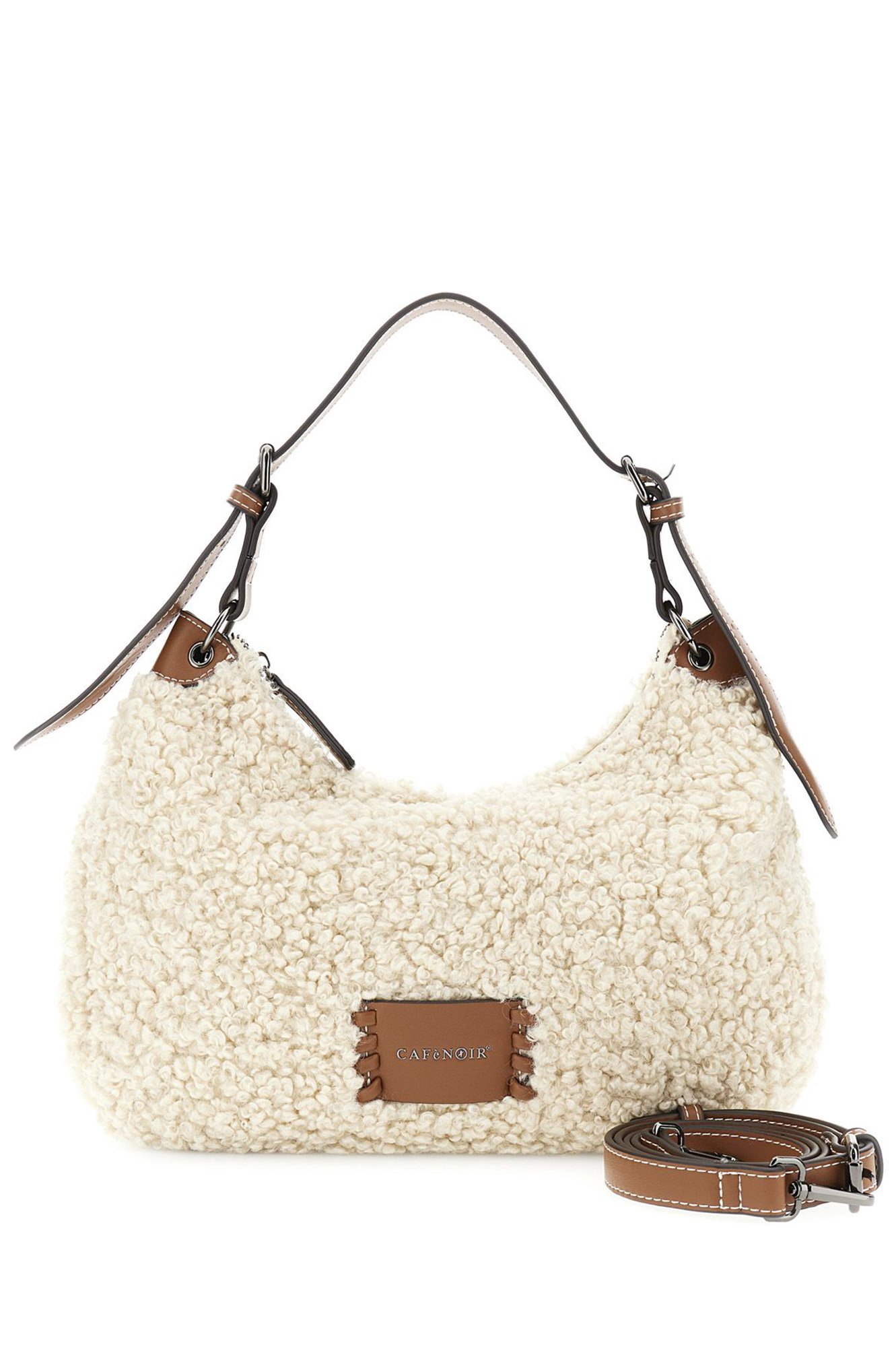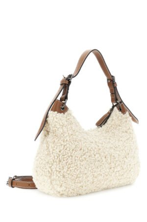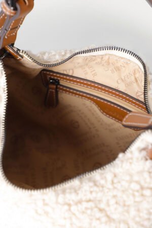 Τσάντα ώμου από curly ύφασμα με δερμάτινες λεπτομέρειες