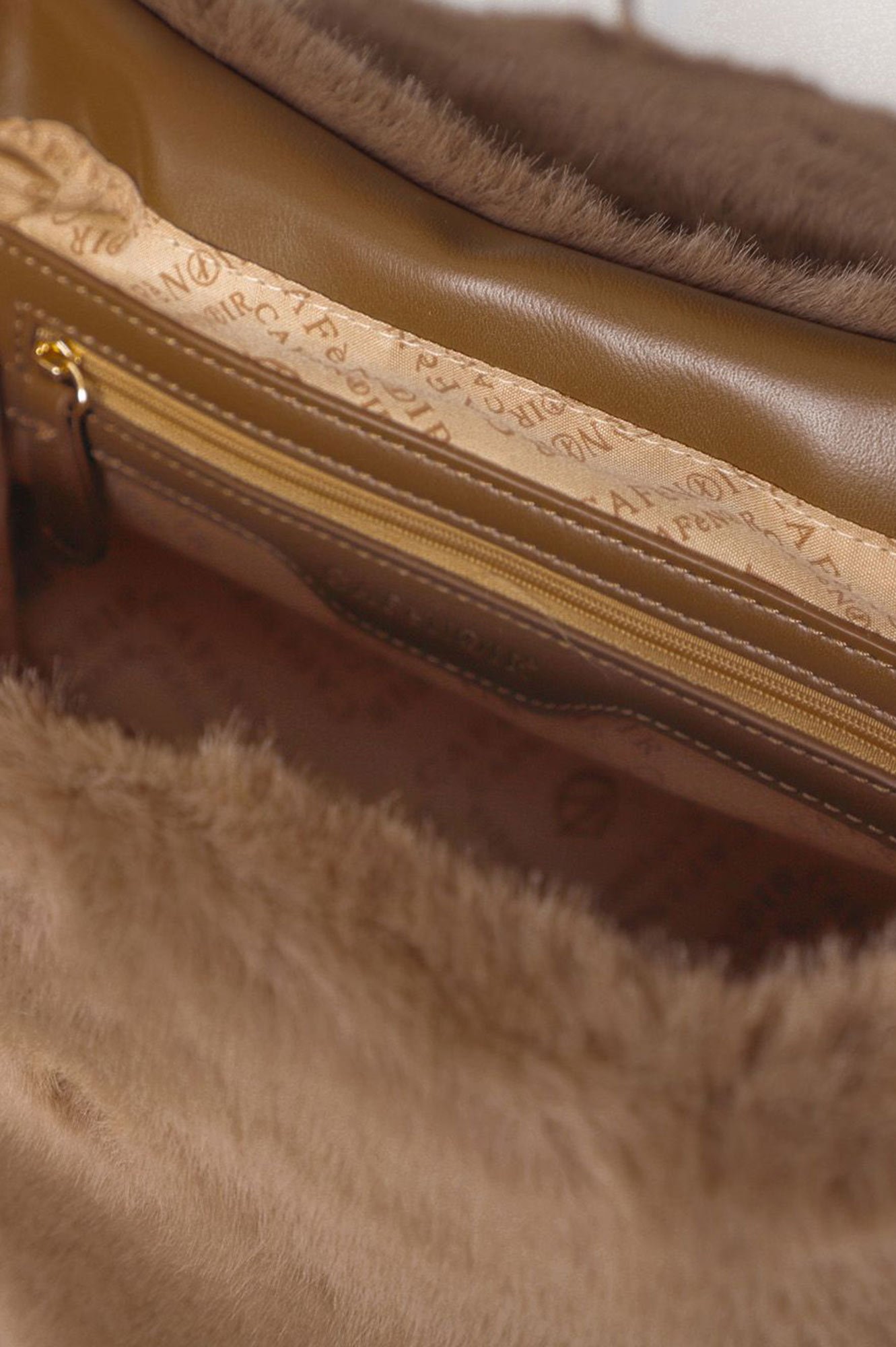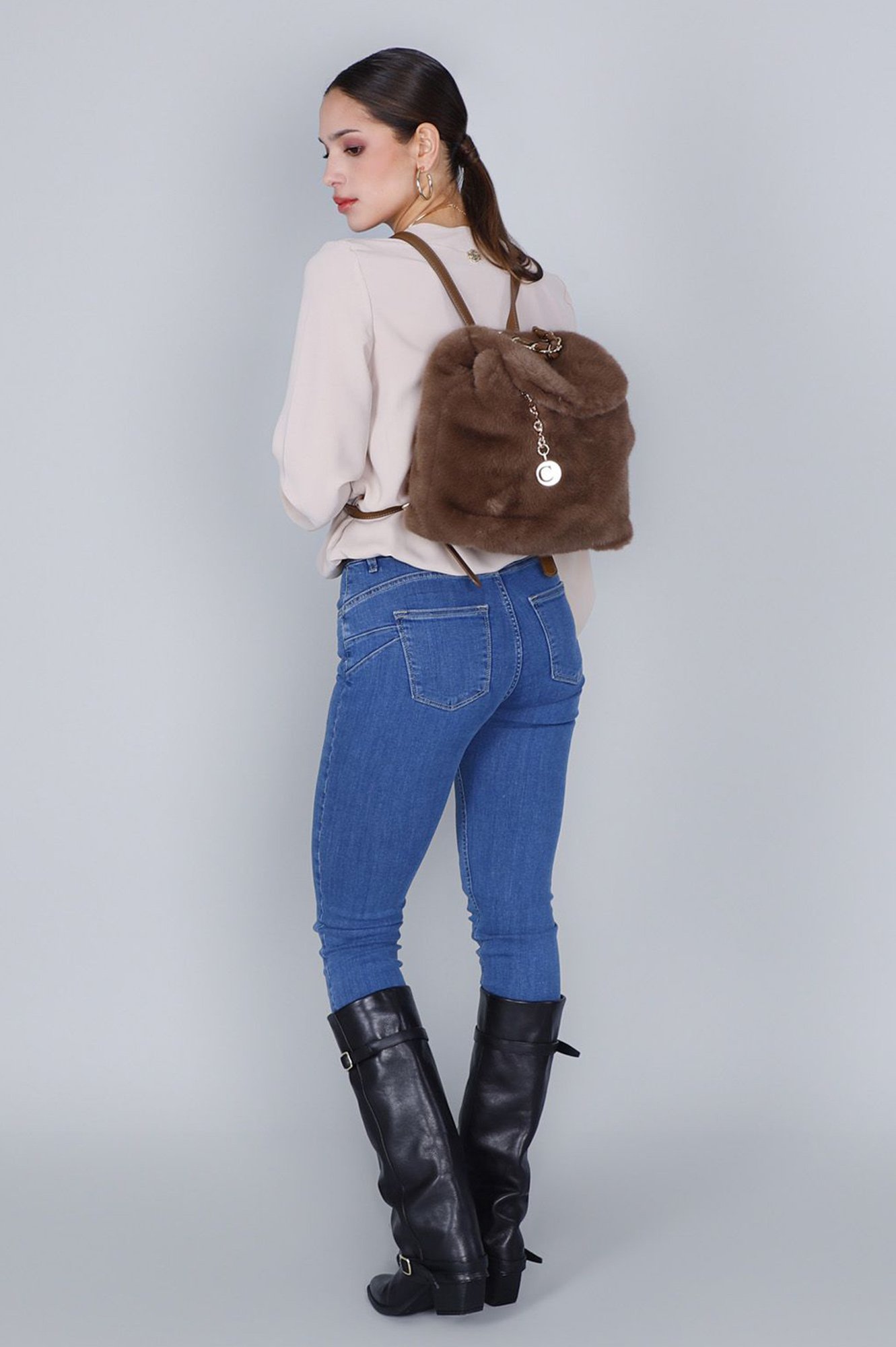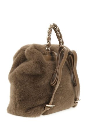 Backpack με μαλακή υφή από οικολογική γούνα, χειρολαβή με αλυσίδα και μεταλλικό charm με λογότυπο CafèNoir