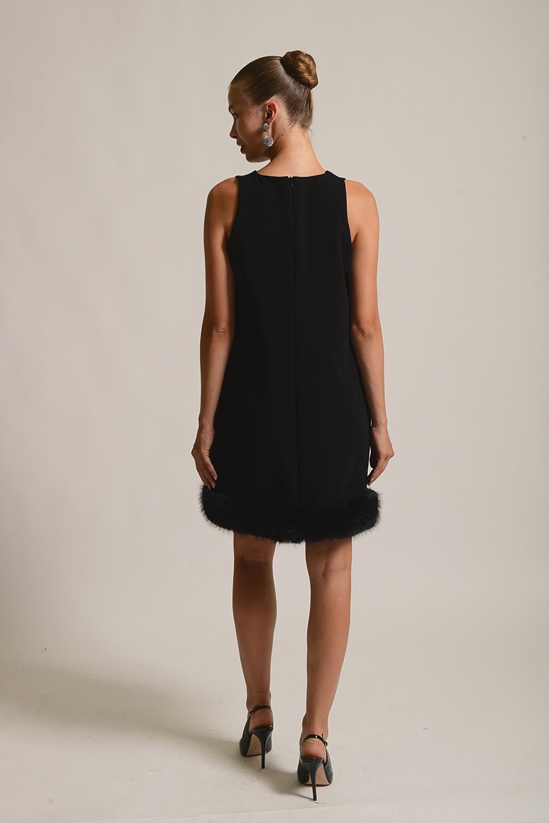 Φόρεμα με παρτούς ώμους σε A γραμμή, με γούνα στο τελείωμα