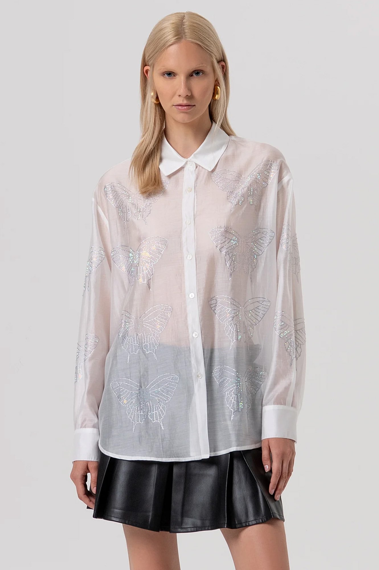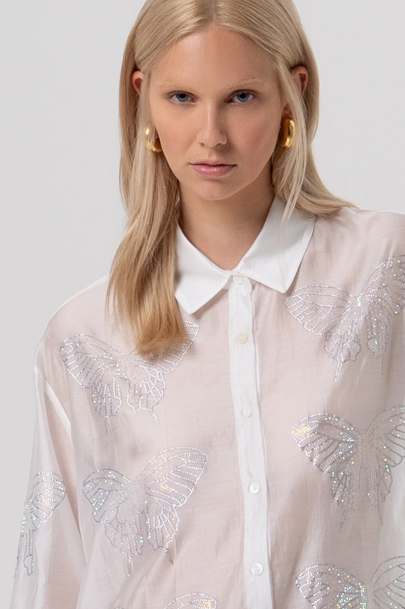 Πουκάμισο Regular Fit από Tencel Organza με Strass Λεπτομέρειες