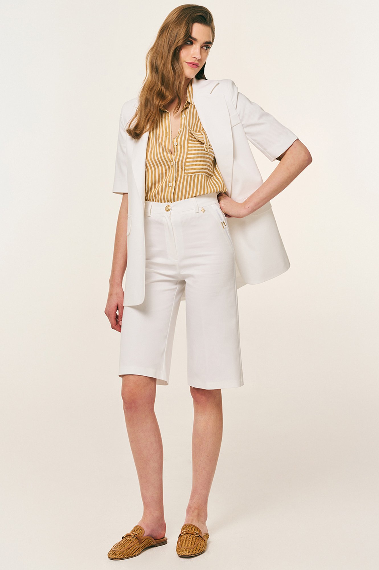 Βερμούδα ψηλόμεση με λεπτομέρεια κάτω από τις μπροστινές τσέπες.
