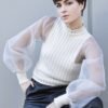 Σατέν μπλούζα V, με λάστιχο στο τελείωμα και στο μανίκι
