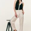 Μπλούζα κοντομάνικη με διχρωμία στο ρέλι, σε “V” λαιμόκοψη