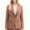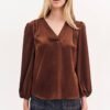 Μπλούζα εμπριμέ με βάτες στον ώμο και φαρδύ μανίκι με σούρες στο τελείωμα