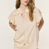 Μπλούζα εμπριμέ αμάνικη με πιάσιμο από χρυσό στοιχείο στον ώμο
