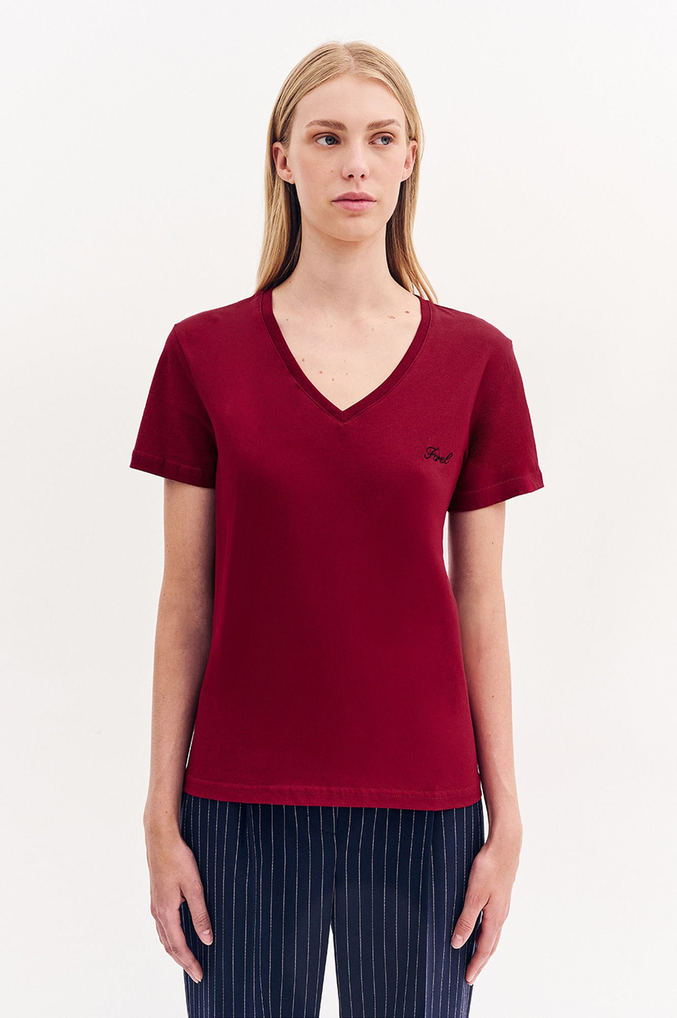 Μπλούζα κοντομάνικη, βαμβακερή σε V κόψιμο.