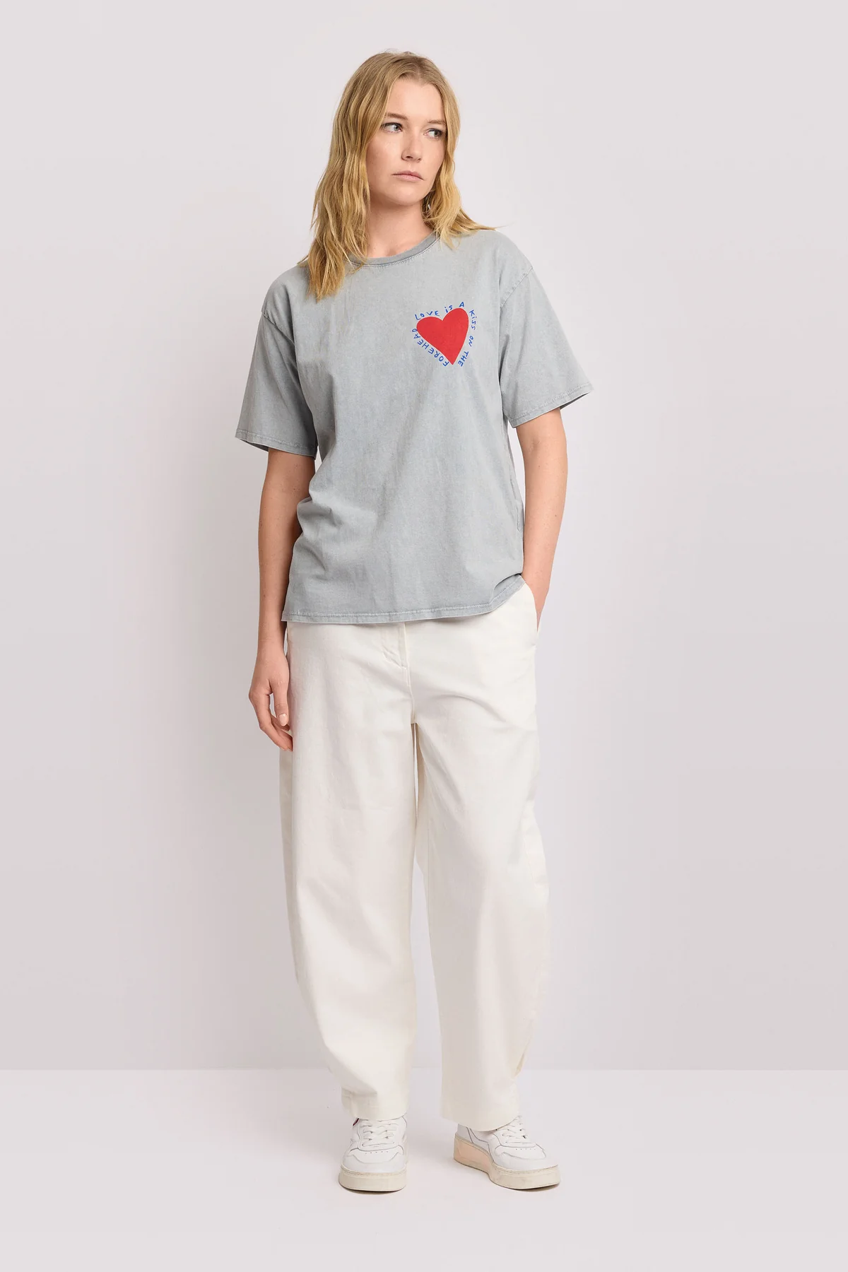 Κοντομάνικο T-shirt με over και χαλαρή εφαρμογή, σχεδιασμένο με χαμηλωμένους ώμους που ενισχύουν το streetwear και ανεπιτήδευτο ύφος του