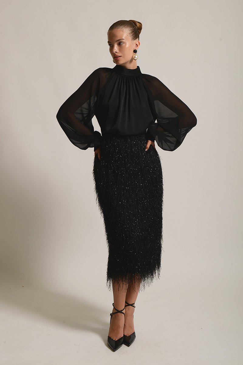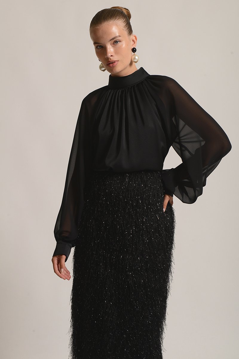 Μαύρη μπλούζα με διαφάνεια & ψηλή λαιμόκοψη