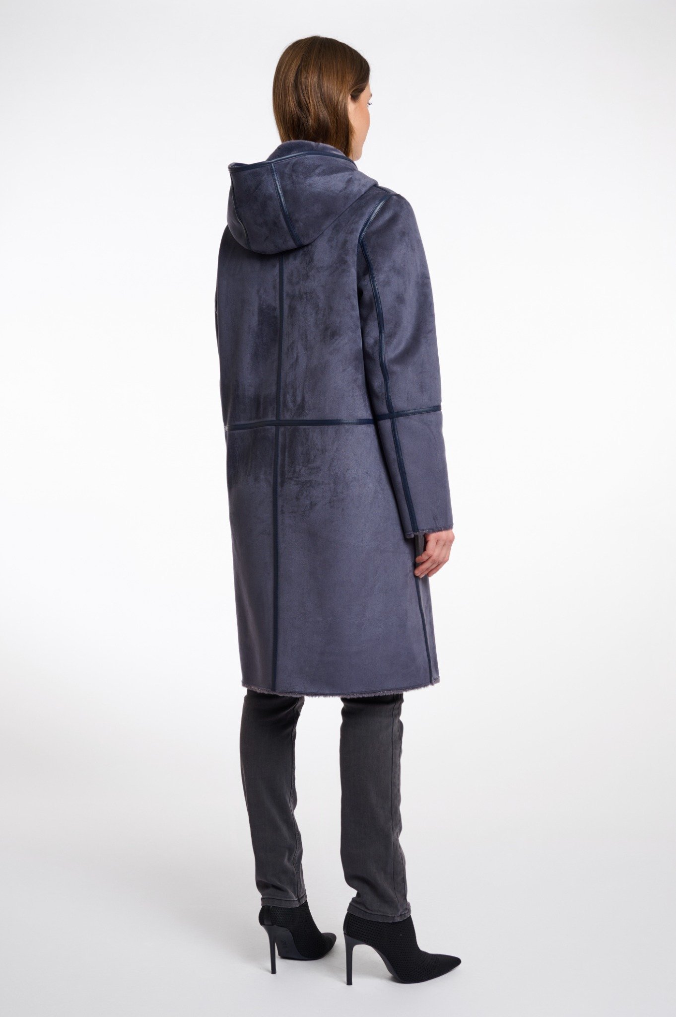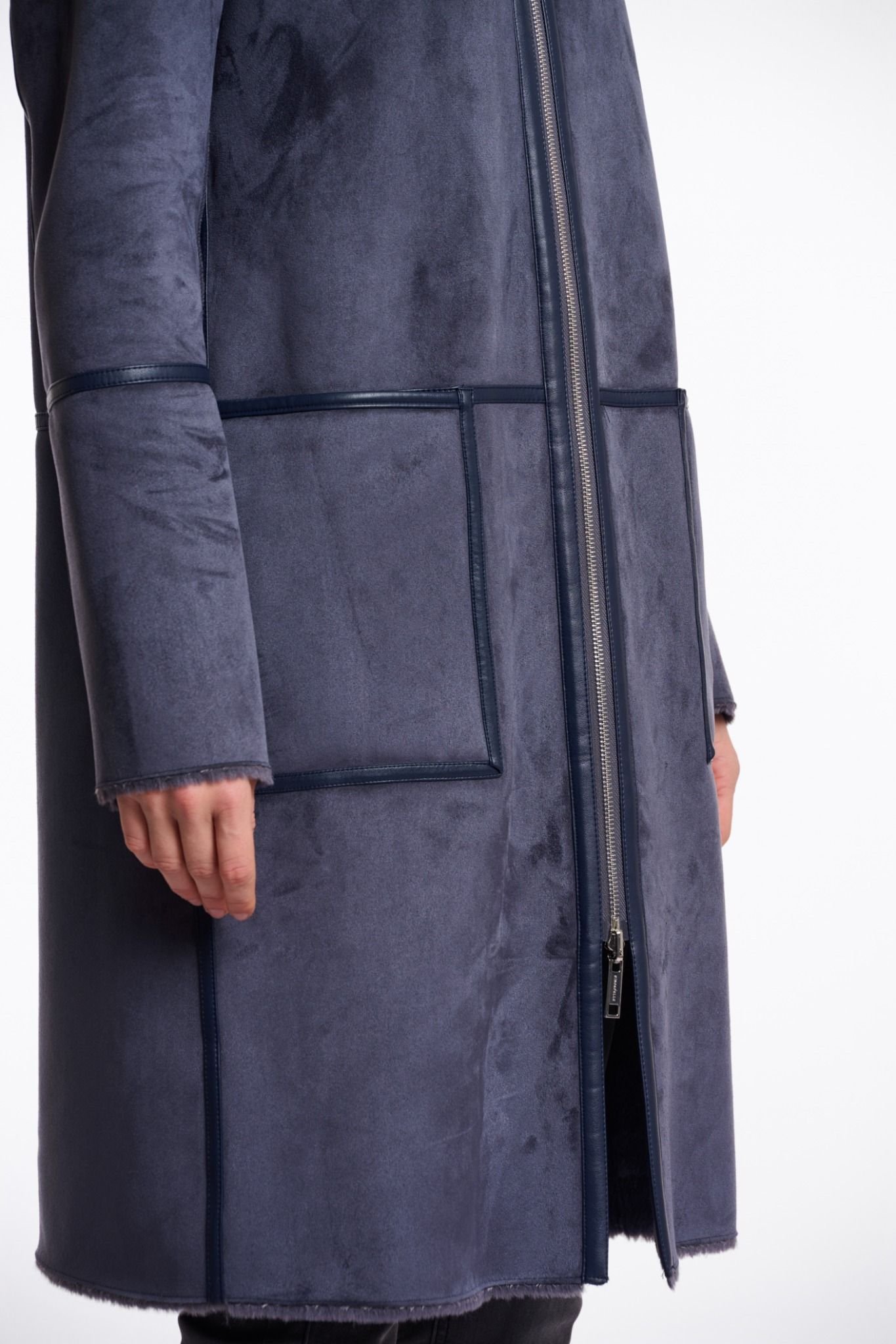 Διπλής όψης παλτό με πλευρά από απαλή γούνα και πλευρά από faux suede. Διαθέτει τσέπες με ασημί φερμουάρ.