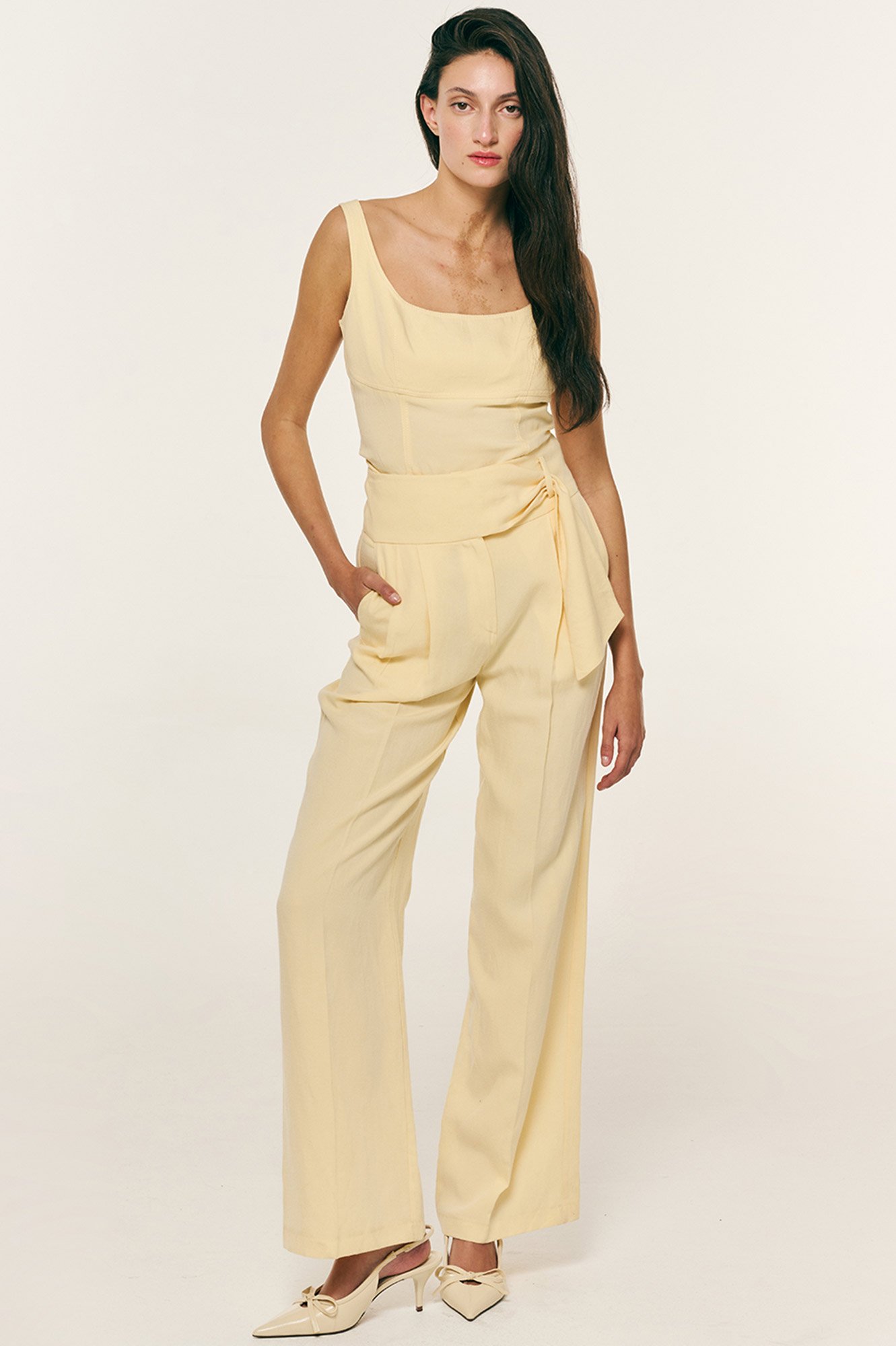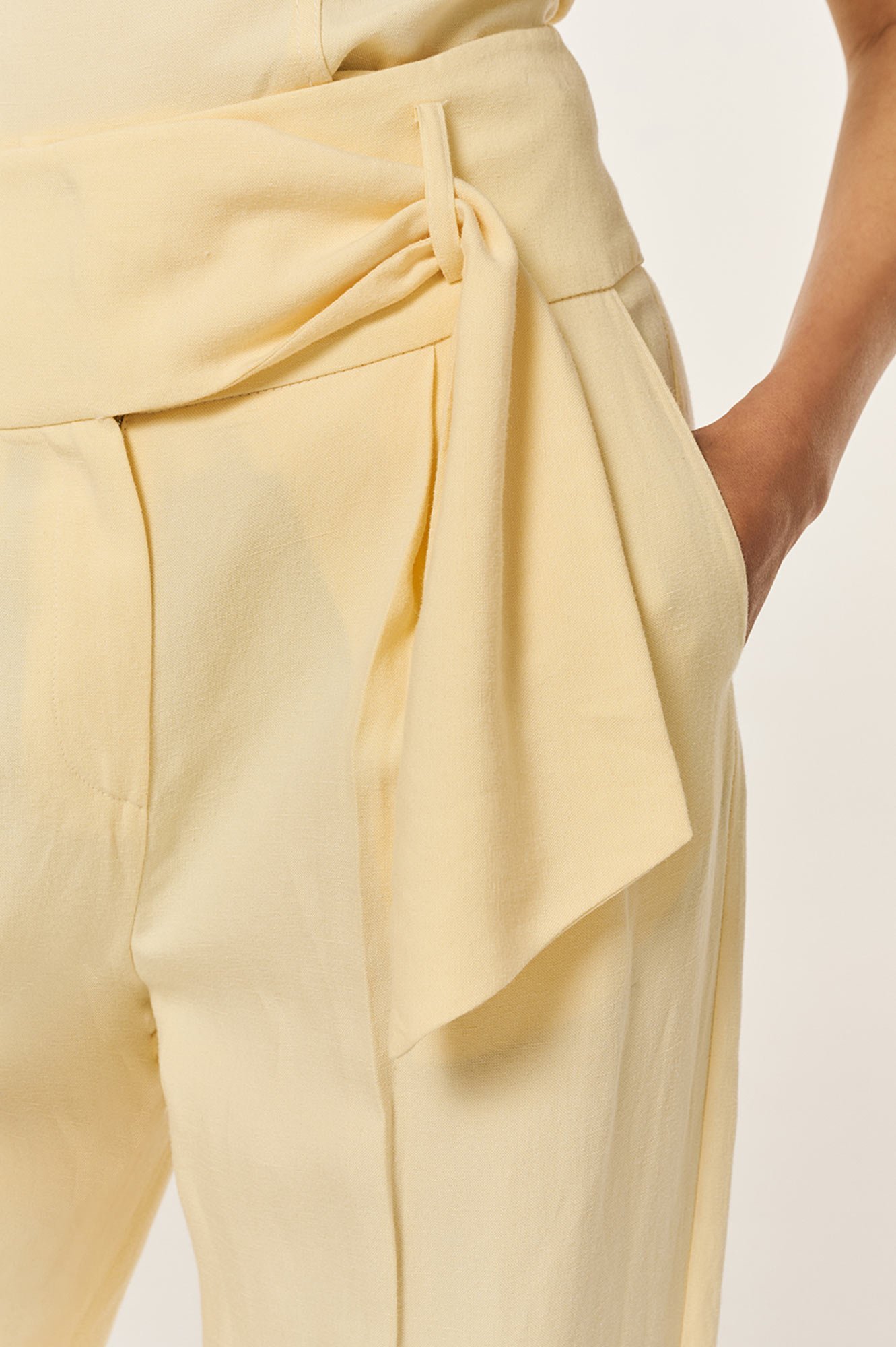 Παντελόνι με πιέτες και θηλιά που περναέι η μία πλευρά της ζώνης και πέφτει σαν μαντήλι μπροστά