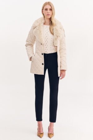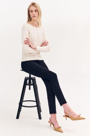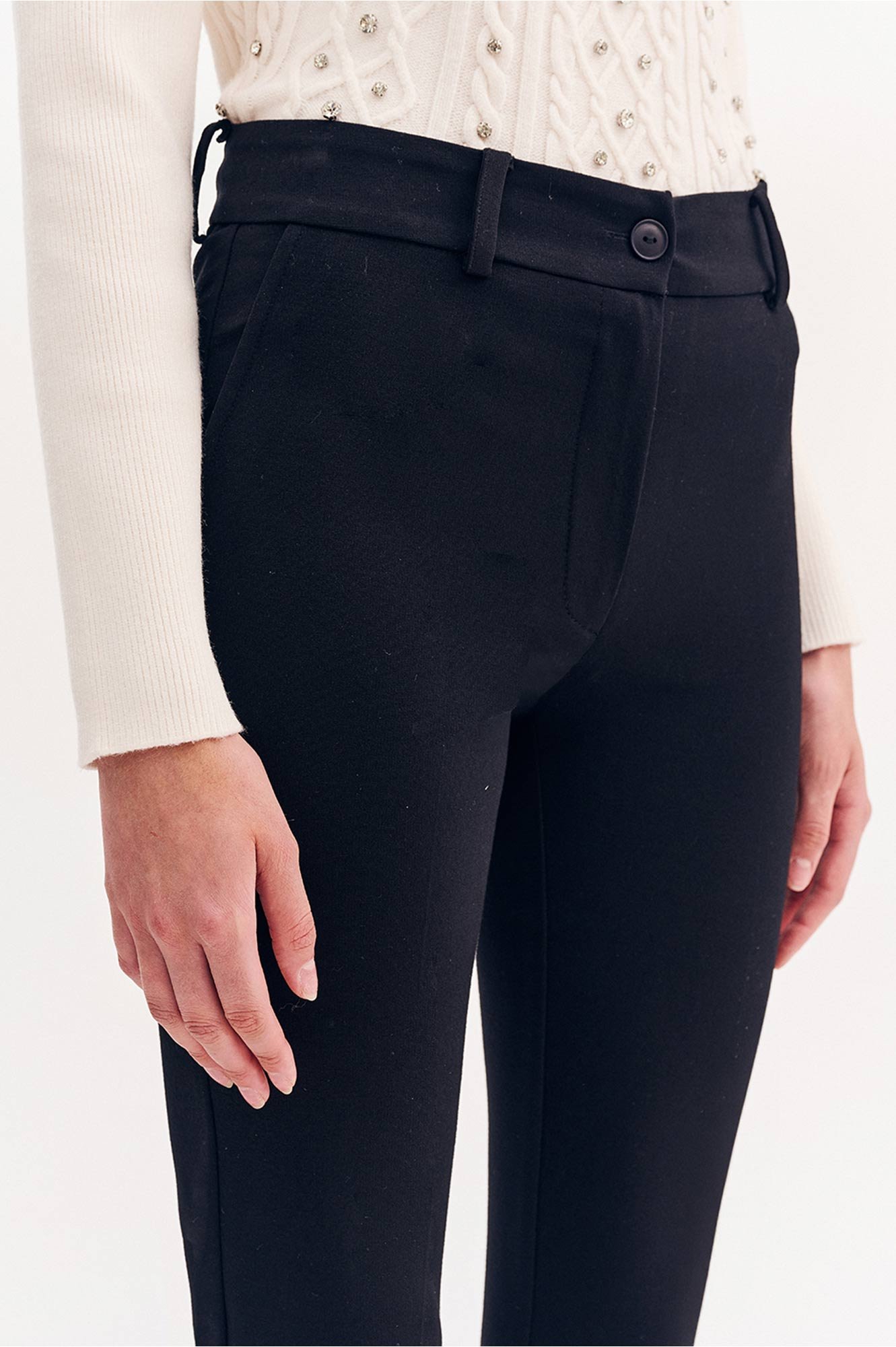 Cigarette παντελόνι σε κλασική γραμμή. Διαθέτει κλείσιμο με κουμπί και φερμουάρ, θηλάκια για ζώνη και στενή γραμμή.
