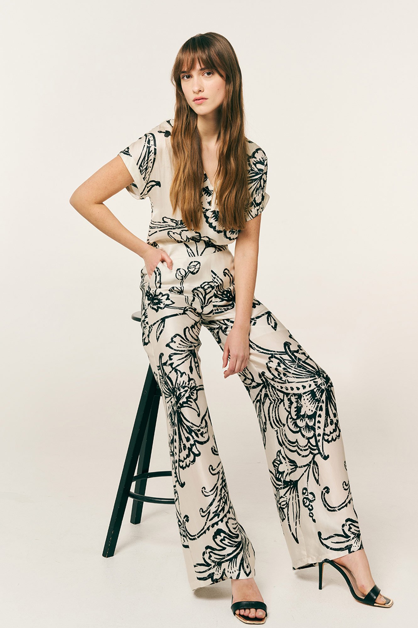 Παντελόνι εμπριμέ με λάστιχο στο πίσω μέρος σε άνετη γραμμή
