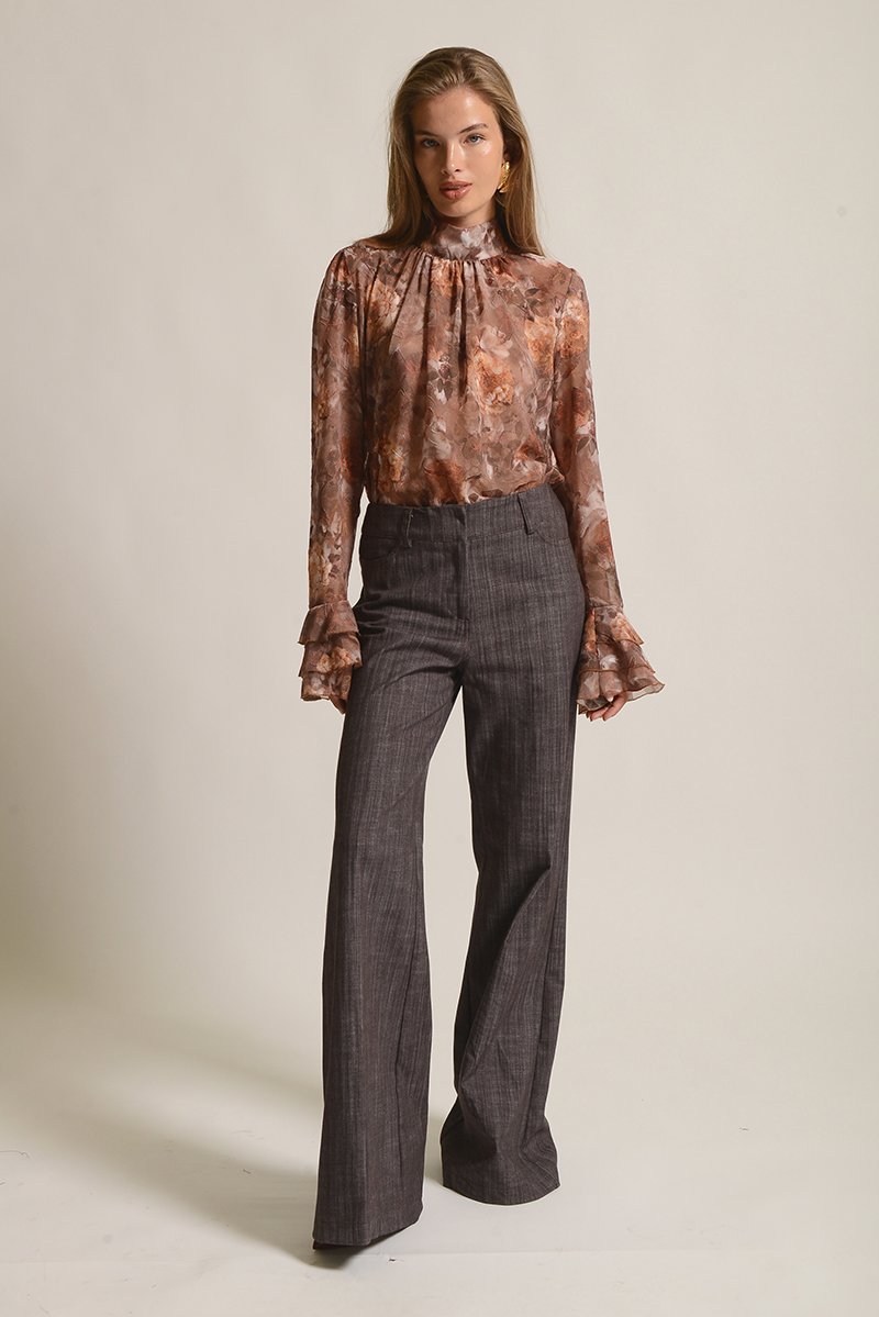 Κομψό ψηλόμεσο παντελόνι σε ίσια, ελαφρώς καμπάνα γραμμή