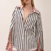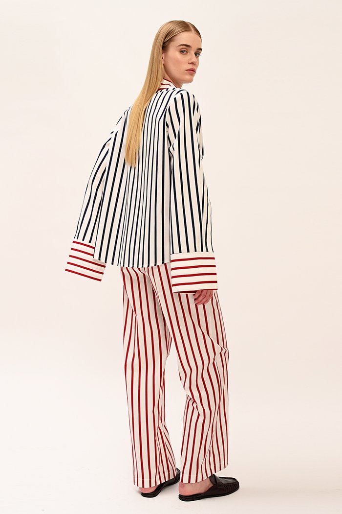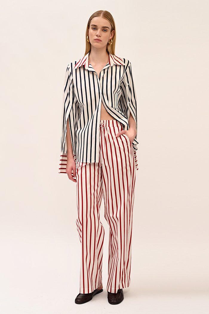 Βαμβακερό παντελόνι με κάθετες ρίγες που επιμηκύνουν τη σιλουέτα και χαρίζουν κομψότητα σε κάθε εμφάνιση. Η άνετη, ίσια γραμμή της την καθιστά ιδανική επιλογή για all-day looks με fashion χαρακτήρα.