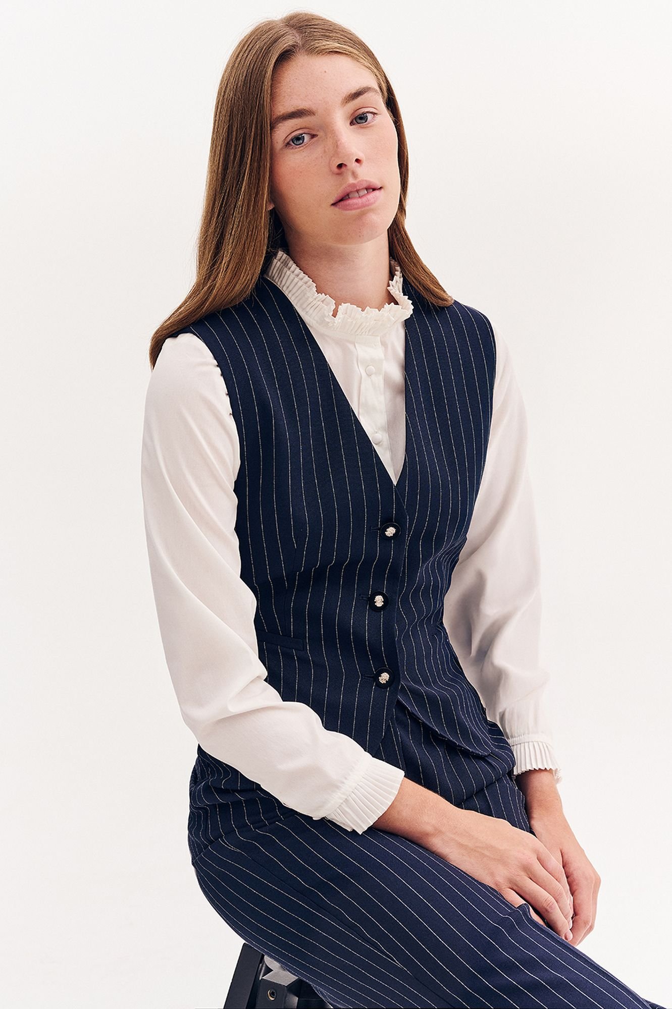 Γιλέκο με ρίγα. Κλείσιμο μπροστά με κουμπιά.